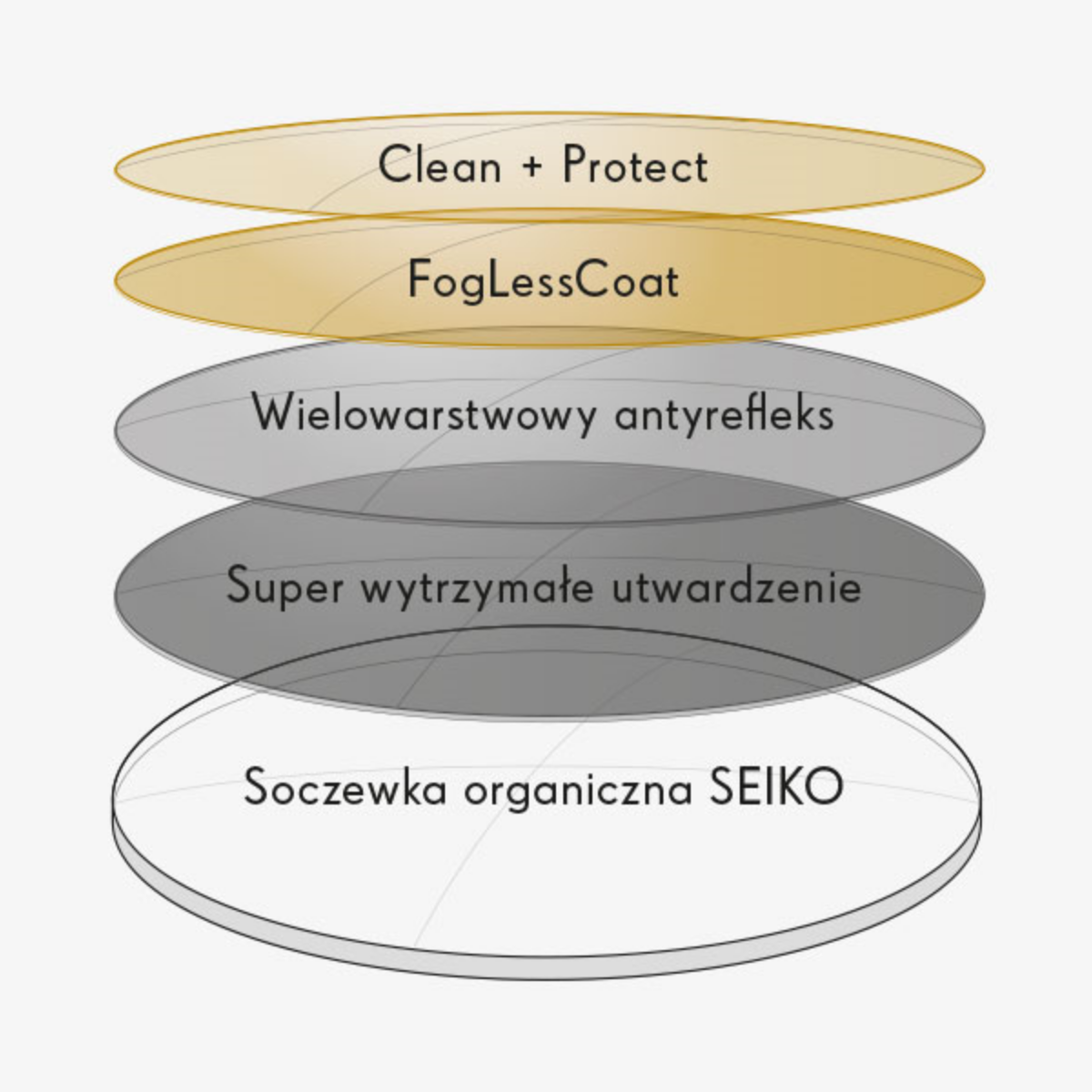 SEIKO FogLessCoat to innowacyjne rozwiązanie, które pomaga cieszyć się precyzyjnym widzeniem w każdych warunkach. Na soczewkach z powłoką SEIKO FogLessCoat para nie osadza się. Soczewki, dzięki właściwościom hydrofilnym, pozostają niezaparowane i w pełni przejrzyste. Wreszcie możesz być w 100% bezpieczny nosząc maseczkę i cieszyć się doskonałym widzeniem bez ograniczeń.